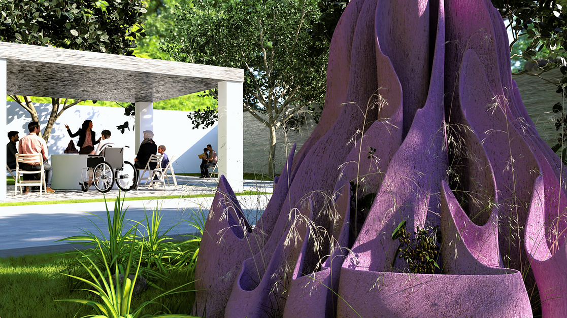 These materials are essential to define this concept and build these spaces. The architectural sense of the sculptures represent a coexistence between human beings and nature; and the exploration of biomaterials promotes a sustainable philosophy in the community.